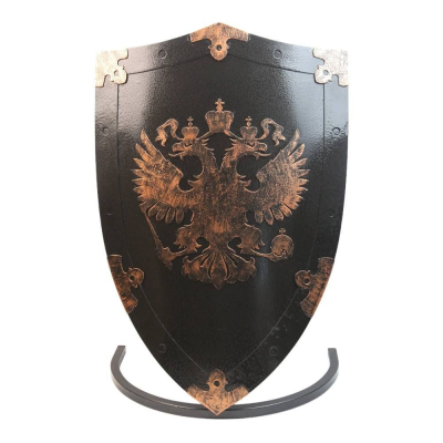 Подставка под шампуры и каминные принадлежности в виде щита с изображением “Герб России”.