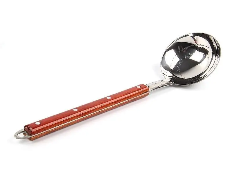 Половник для казана (10-25 литров) с деревянной ручкой 46.5 см из пищевой нержавеющей стали производство Россия. Изделие ручной работы, не китайская штамповка, прекрасно подойдет для средних казанов 10-25 литров. Повышенная прочность шумовки обусловлена толщиной нержавейки 2 мм. ручка, 1-1.5 мм окружность, так же ручка выполнена полукругом как ребро жесткости. Половник под казан не только отлично выполняет свои функции, но и благодаря узорам и деревянно ручке очень красиво будет смотреться на вашей кухне. Деревянная ручка не нагревается и не обжигает руки.