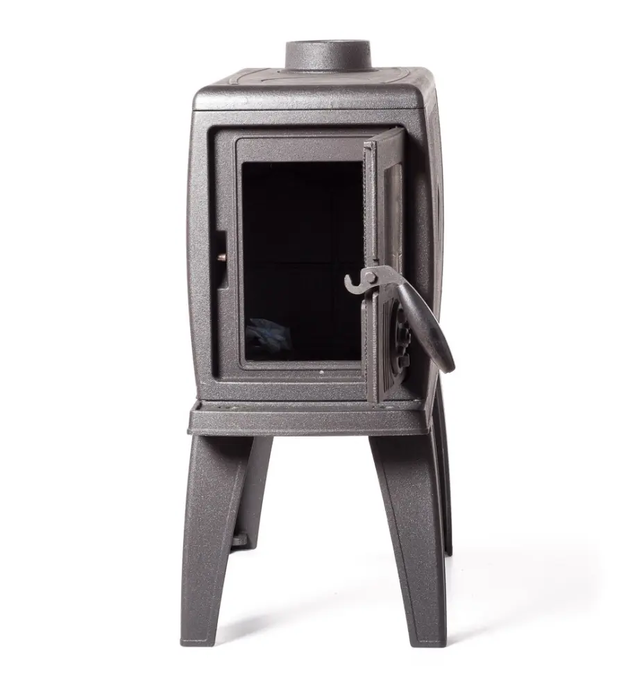 -толстостенная топка, которая не подвержена линейному расширению и является при довольно скромных габаритах довольно вместительной (макс. загрузка дров до 4 кг);