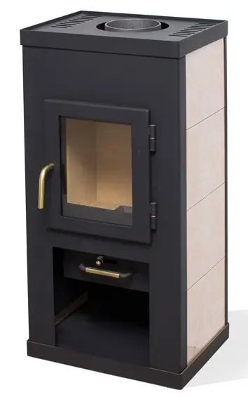 Стальной корпус печи, выполненный из высококачественной стали, покрыт жаропрочной эмалью черного цвета, которая предотвращает появление коррозии.