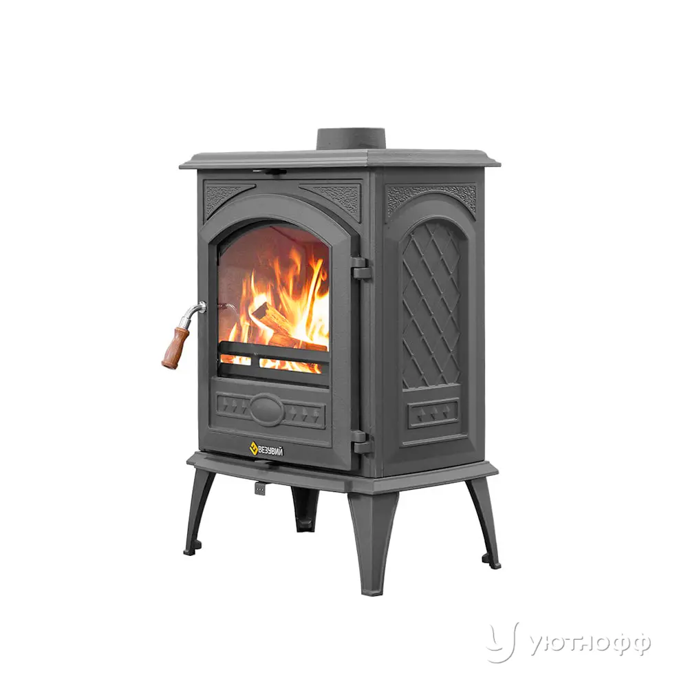 Чугунная дверца с фирменным логотипом и стеклом диагональю 370 мм оснащена ручкой с регулировкой силы прижатия.