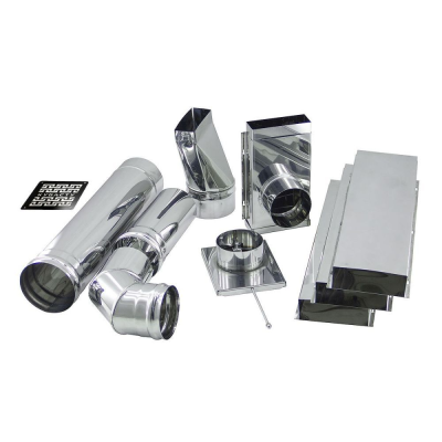 — труба прямоугольая без гильзы — 1 шт. — труба прямоугольая с гильзой — 3 шт. — переход с круглой трубы ⌀115 на прямоугольную — 1 шт. — тройник с заглушкой (конденсатоотвод) — 1 шт. — труба ⌀115 длиной 0,5 м — 1 шт. — труба ⌀100 длиной 0,25 м — 1 шт. — шибер-задвижка ⌀100 с перфорацией с прутком — 1 шт. — угол ⌀100 90o — 1 шт. — скотч метализированый — 1 шт. — паспорт — 1 шт.